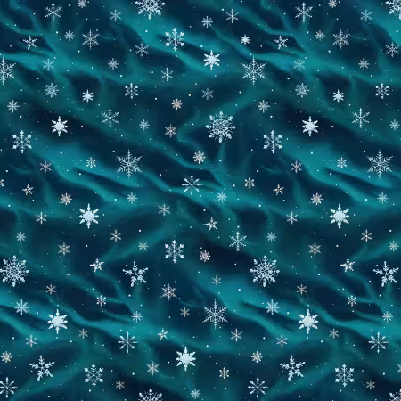 This enchanting fabric features a mesmerizing dark aqua background with a subtle aurora borealis effect, enhancing the winter wonderland theme. Scattered across this backdrop are delicate white snowflakes of varying sizes, creating a festive and serene design perfect for holiday projects or winter-themed crafts. The fabric’s soft texture and vibrant print make it ideal for quilting, apparel, and home decor, offering a touch of elegance to any creation